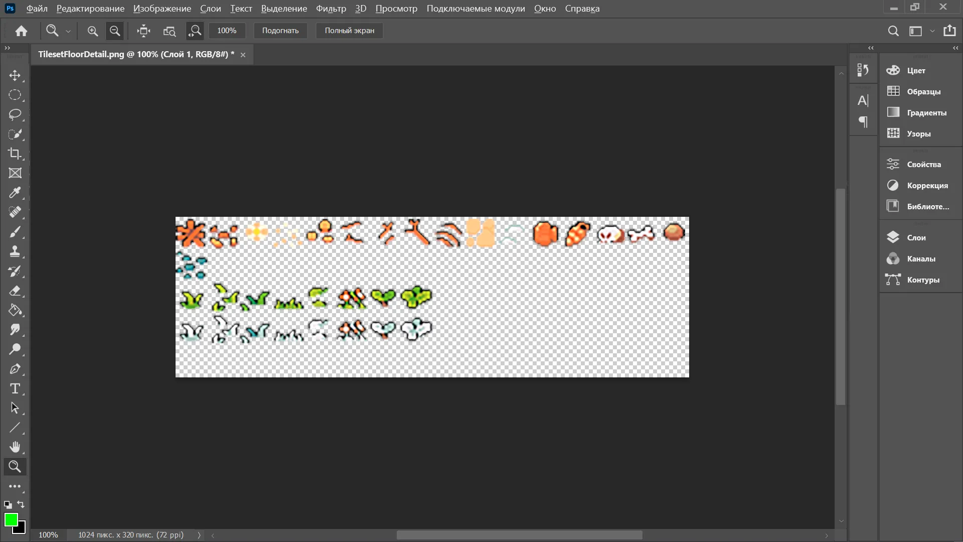 - Тайлсеты. Тайл — это маленькие картинки для прорисовки графики (чаще всего, карт). Процесс создания тайлов весьма энергозатратный, а наложение этих тайлов достаточно простое дело. Просто выбрать где лежит камень, а где земле или вода. В движках типа Unreal или Unity вы можете просто выбрать слой карты и нарисовать клеточками из тайтлов карту.