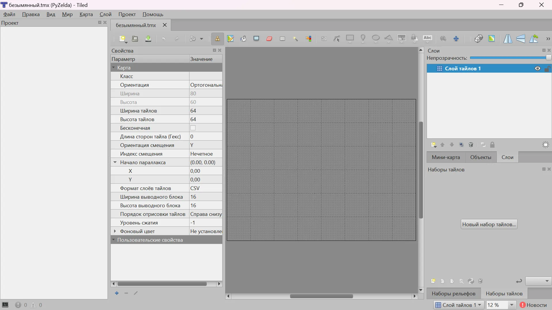 Сейчас ничего не поменяется, так как мы объявили что будем что-то рисовать, но ничего не нарисовали. Давайте приступим к процессу отрисовки. Для этого создадим новый файл tile.py.
