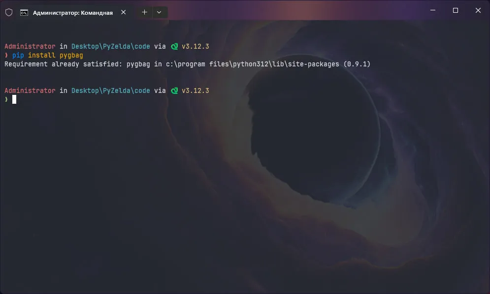 Тут всё просто: pip install pygbag. Это вторая библиотека, которую мы используем за всё время работы (не считая базовые). Вы можете этого не делать, если хотите оставить проект в самом первозданном виде. Я же хочу, чтобы в игру поиграли другие пользователи и выложу её в сеть.